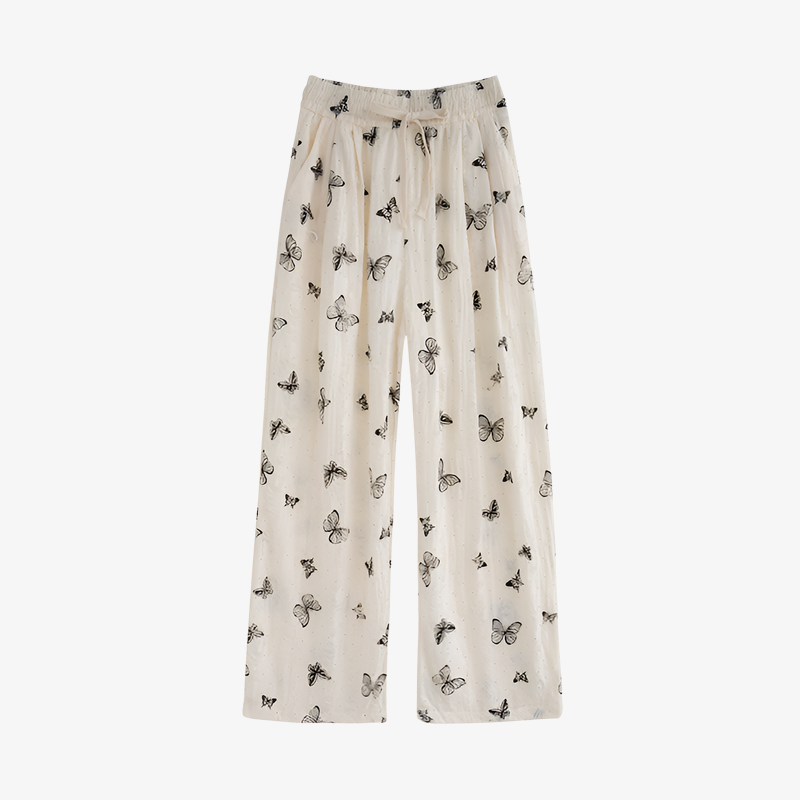 ホワイトバタフライホールヤマモトパンツレディース春秋ハイウエストワイドレッグパンツドレープパンツカジュアルダイヤモンドパンツ小さいサイズホールパンツ夏ワイドレッグパンツ