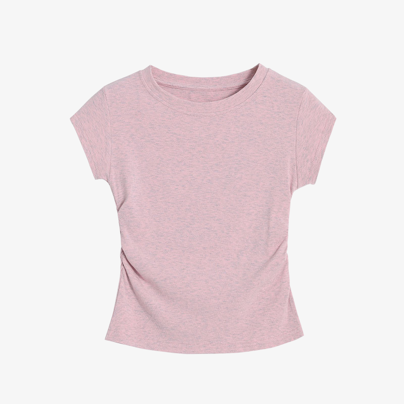 小柄女性向けソルトスタイル肩正しいフリル袖トップス・夏のドーパミンコーデ・スリム見えデザイン丸首シャツ