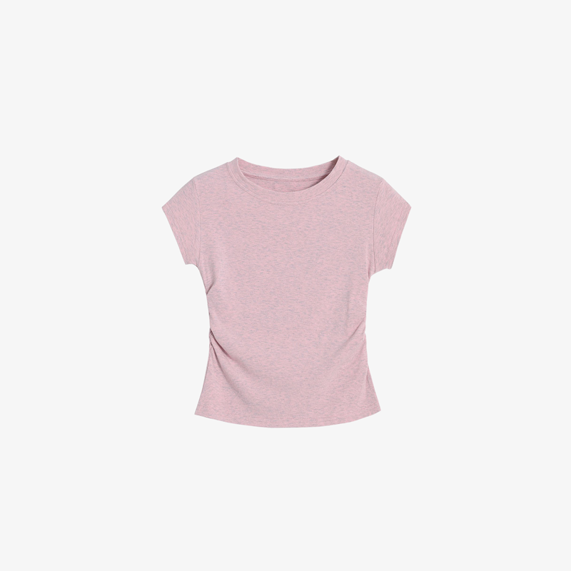 小柄女性向けソルトスタイル肩正しいフリル袖トップス・夏のドーパミンコーデ・スリム見えデザイン丸首シャツ